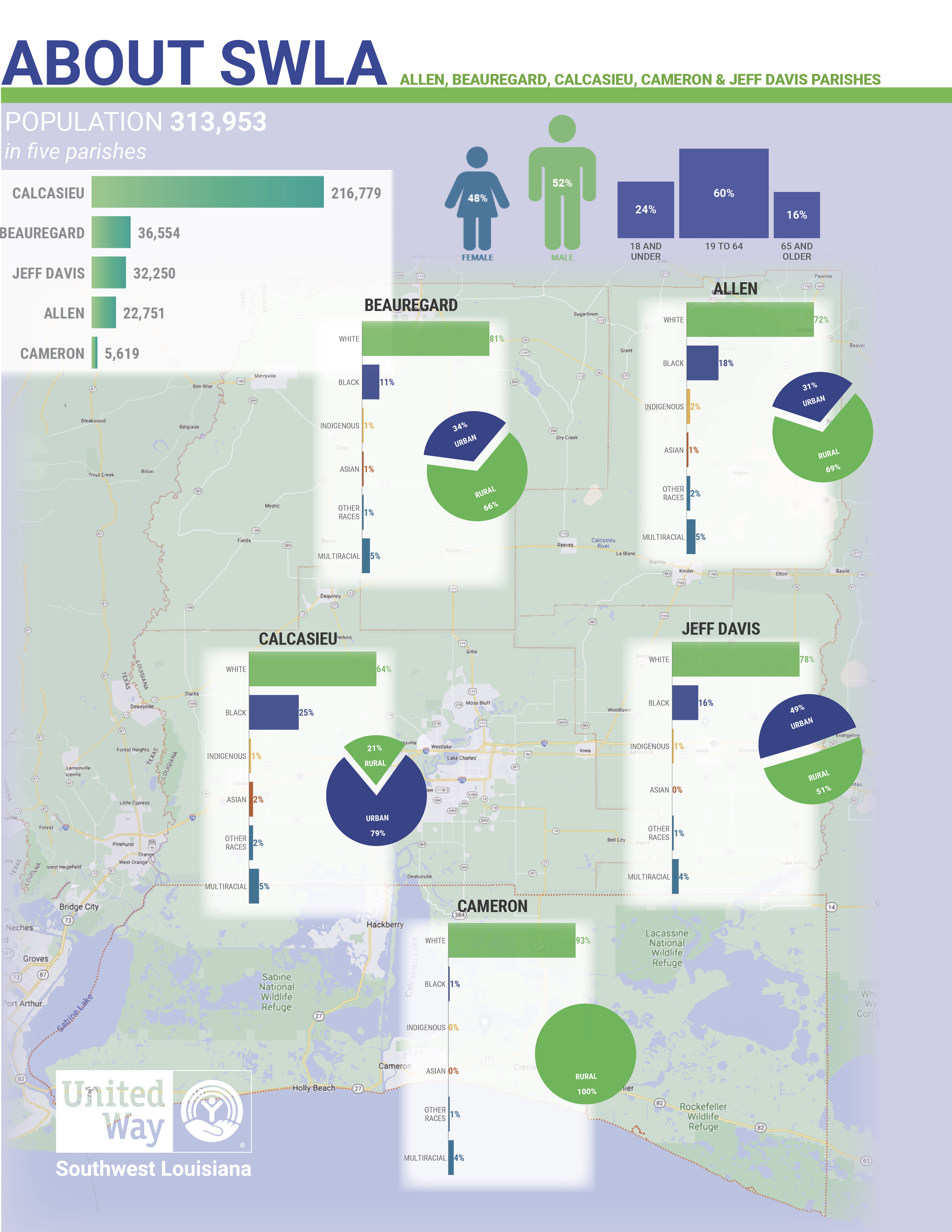 We serve a diverse five-parish region that has been heavily impacted by natural disasters. With a large majority of each parish living BELOW the ALICE THRESHOLD, we produce boundary breaking Initiatives and many collaborative partnerships that are both fast and efficient at addressing the human services issues Southwest Louisiana suffers from.