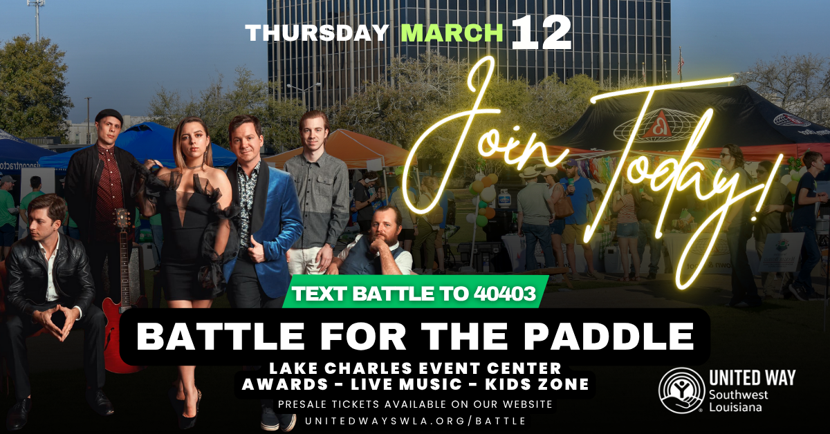 For five years, Battle for the Paddle has become an important fundraising and community‐building event for United Way Southwest Louisiana. Funds raised strengthen programs across critical areas, including community resiliency, disaster relief, youth opportunity, financial security, and more. With our region recovering and rebuilding from recent storms and economic shifts, your participation helps ensure no one in Southwest Louisiana is left behind.